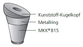 Der MKK® Vario besteht aus einem galvanisch verzinkten Metallring und einem Kunststoff-Kugelkopf. Der MKK® Vario B 15 ist mit einem Winkelausgleich von 20° stufenlos einsetzbar.